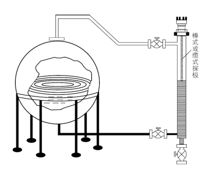 1、用棒式或纜式探極測量桶形罐液位: