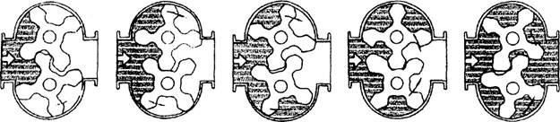 ZW-LXZ系列不銹鋼雙轉子流量計對流體流量的測定是在計量腔體內完成的。一對螺旋轉子在液體的壓力下轉動,轉子與計量腔壁間形成的封閉空間(圖陰影部分)每回轉一次排出8倍陰影體積。因此根據這一關系,只要計量轉子回轉的次數,即可計算出流量累積量,根據每秒的轉數,即可測出瞬時流量。